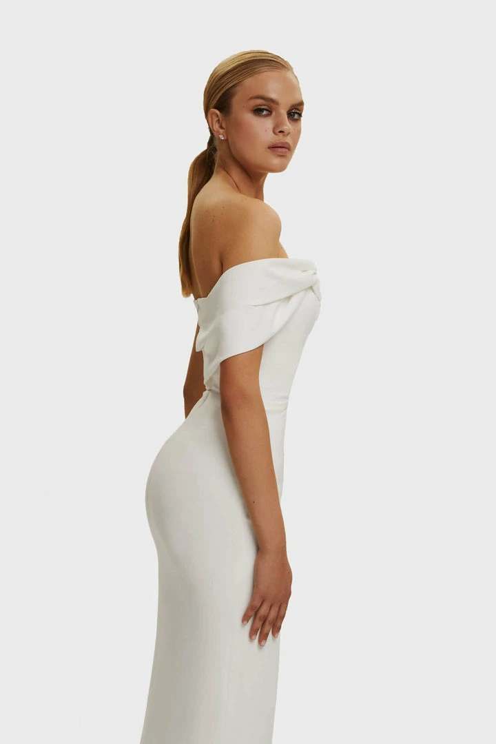 Where to wear this classic midi off the shoulder dress formal: