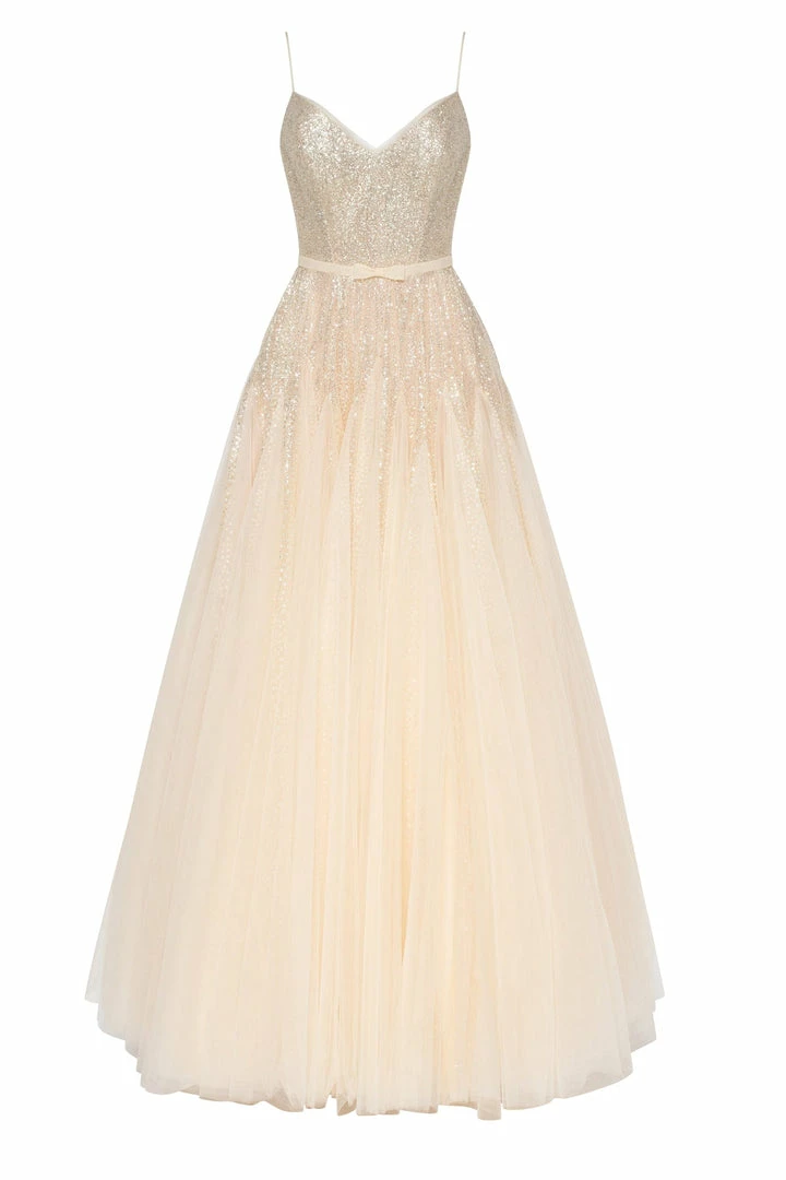 Where to wear this Fitted maxi tulle dress sprinkled with glitter: