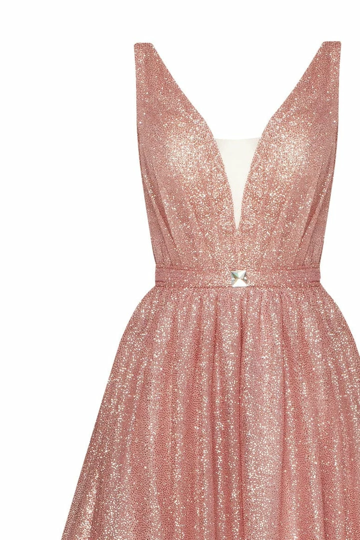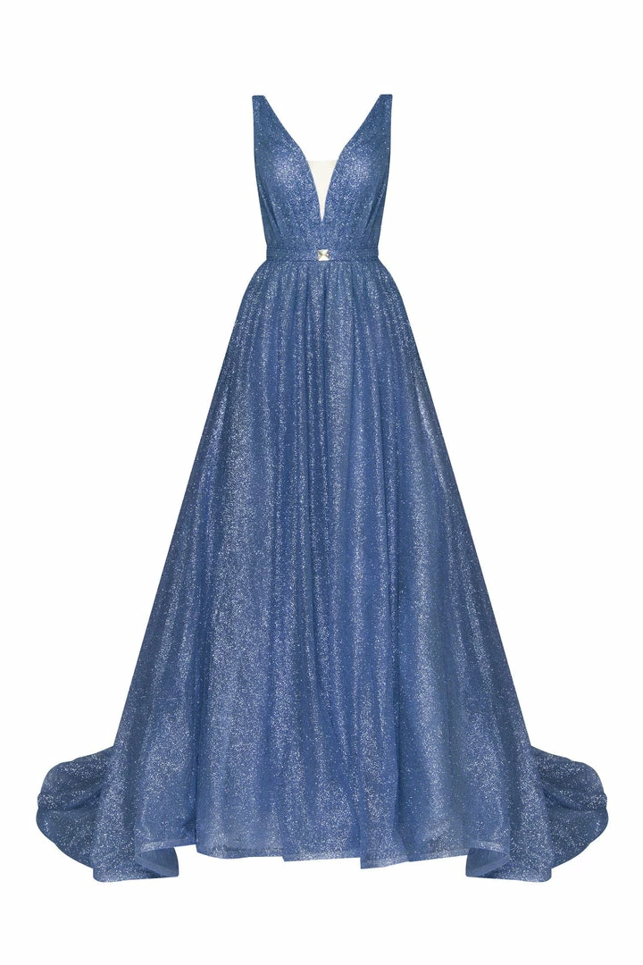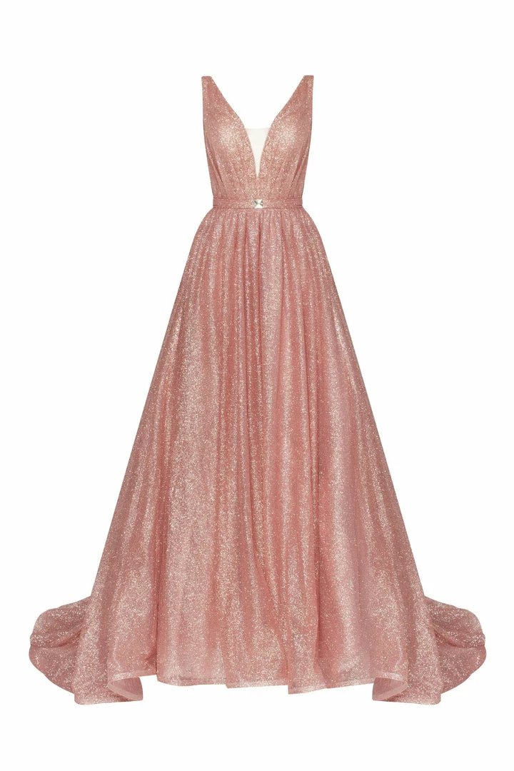 - Style: glitter maxi evening gown