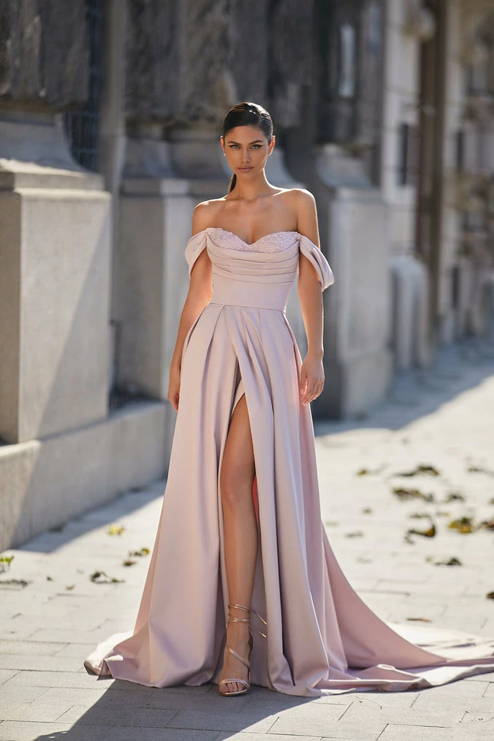 Events and occasions to wear this stunning romantic Milla evening off the shoulder dress formal: