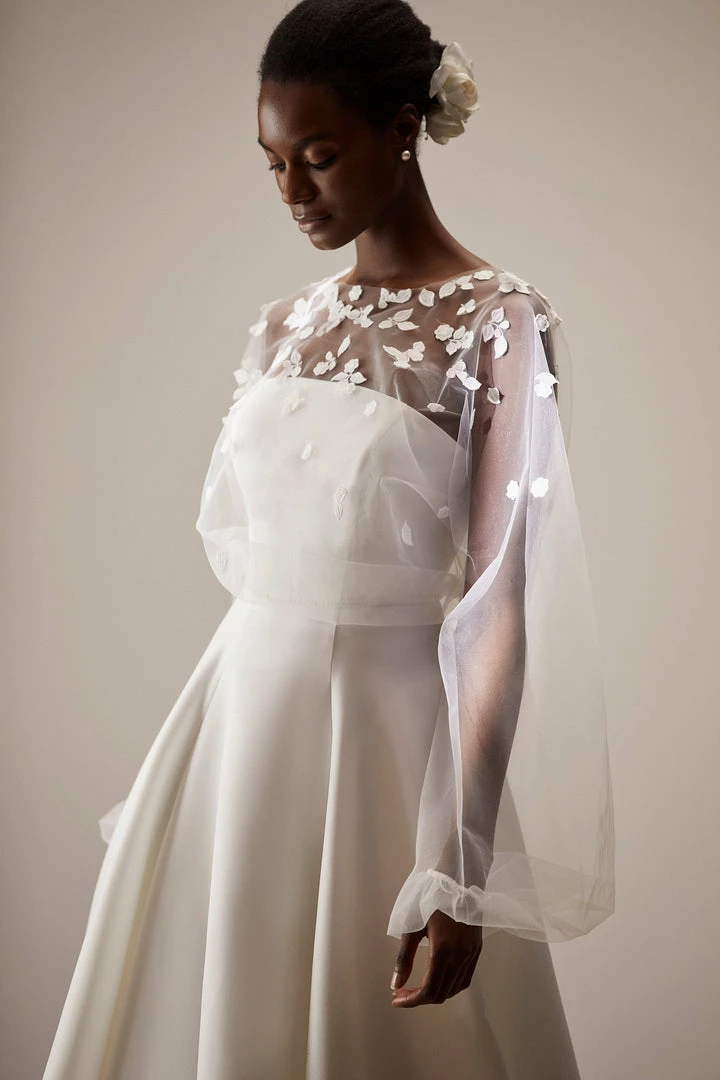 Elegant delicate ivory bolero with long sleeves. Decorated with tender flowers and leaves.