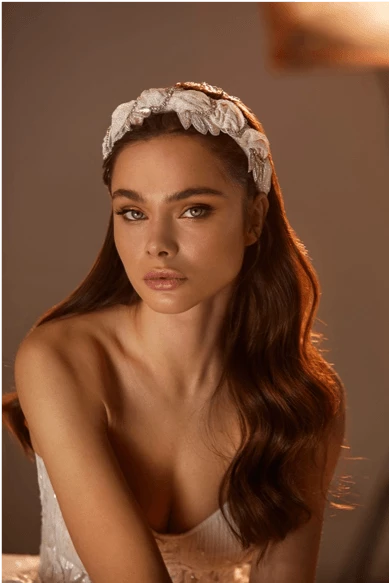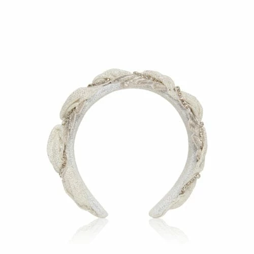 Exclusive Milla Nova headband is crafted from glitter fabric and adorned with floral-shaped crystals.
