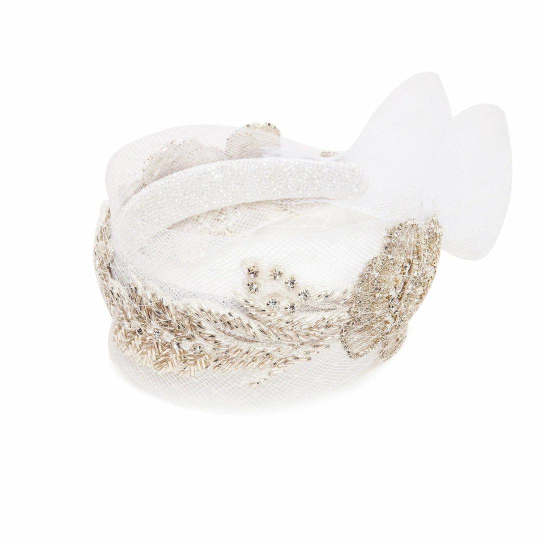 Exclusive Milla Nova headpiece with gorgeous floral motif beading.
